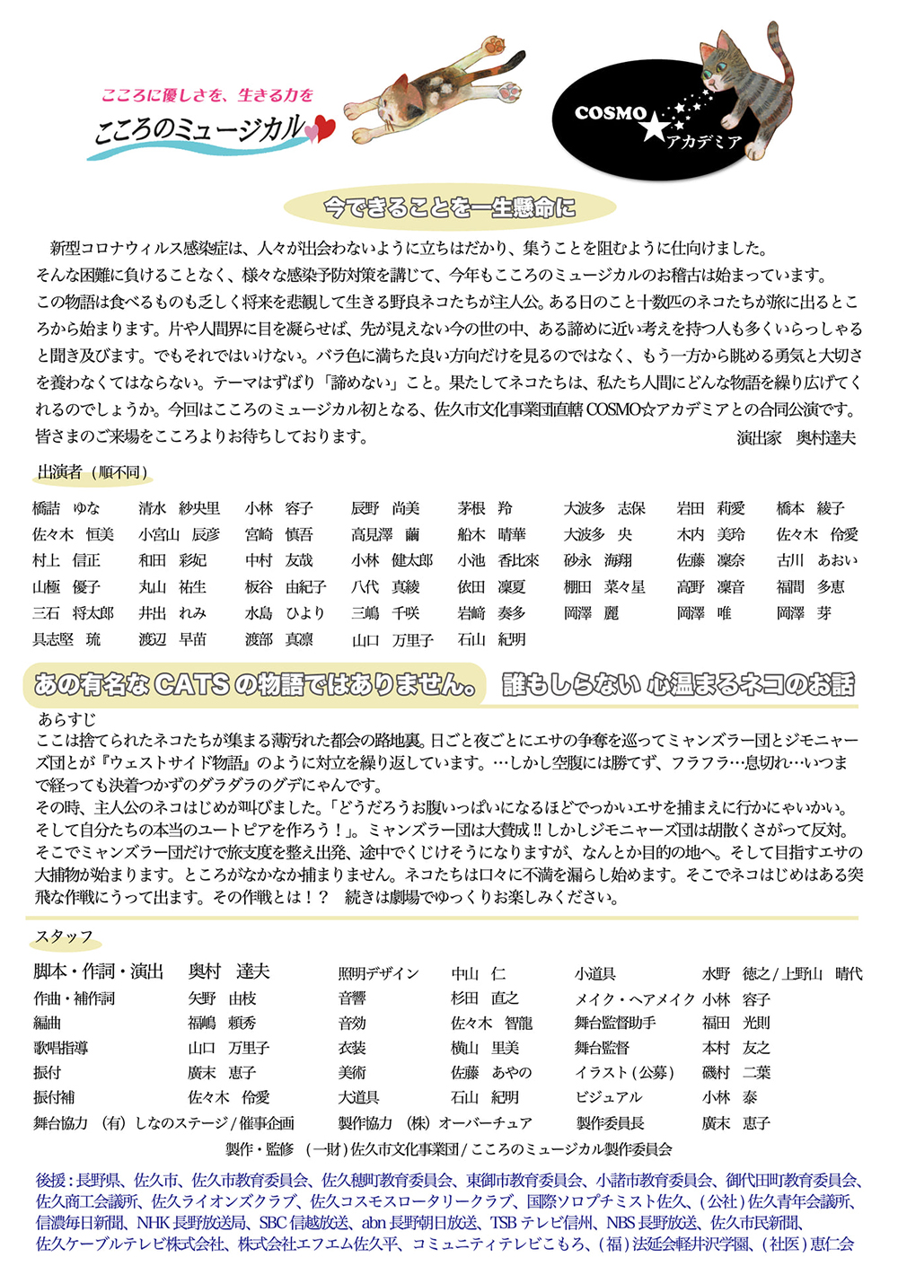 ネコたちのトウモロー 2021 1/30 公開作品 2021年1月30日 公開作品 Share! URLをコピーしました! 心の中の光となって〜人間物語 丸岡秀子の半生〜 黄金の群れ〜水の調べは明日への扉〜 関連記事 大イナル道〜木内源五郎芳軒伝奇〜 2025年9月4日 あぜ道に命のわだち〜若月俊一(佐久総合病院名誉総長)物語〜 2024年11月9日 あぜ道に命のわだち〜若月俊一(佐久総合病院名誉総長)物語〜 2023年11月18日 佐久の夜の夢 2022年11月12日 黄金の群れ〜水の調べは明日への扉〜 2021年11月13日 心の中の光となって〜人間物語 丸岡秀子の半生〜 2019年11月9日 「心の中の光となって〜人間物語 丸岡秀子〜」 2018年11月11日 時空をまたぐ汽笛〜佐久に鉄道を敷こう〜 2017年11月12日