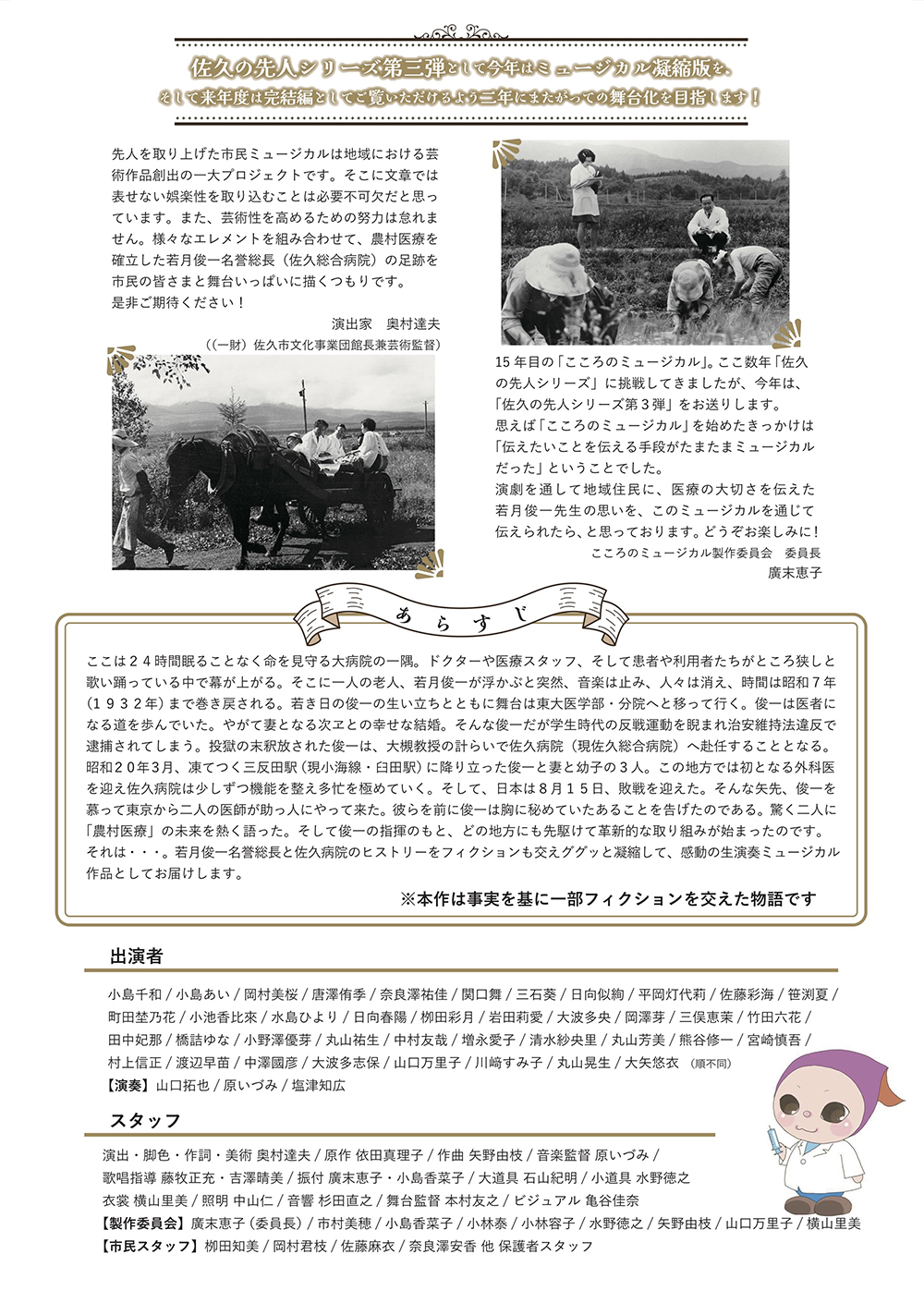 あぜ道に命のわだち〜若月俊一(佐久総合病院名誉総長)物語〜 2023 11/18 公開作品 2023年11月18日 公開作品 Share! URLをコピーしました! 佐久の夜の夢 あぜ道に命のわだち〜若月俊一(佐久総合病院名誉総長)物語〜 関連記事 大イナル道〜木内源五郎芳軒伝奇〜 2025年9月4日 あぜ道に命のわだち〜若月俊一(佐久総合病院名誉総長)物語〜 2024年11月9日 佐久の夜の夢 2022年11月12日 黄金の群れ〜水の調べは明日への扉〜 2021年11月13日 ネコたちのトウモロー 2021年1月30日 心の中の光となって〜人間物語 丸岡秀子の半生〜 2019年11月9日 「心の中の光となって〜人間物語 丸岡秀子〜」 2018年11月11日 時空をまたぐ汽笛〜佐久に鉄道を敷こう〜 2017年11月12日